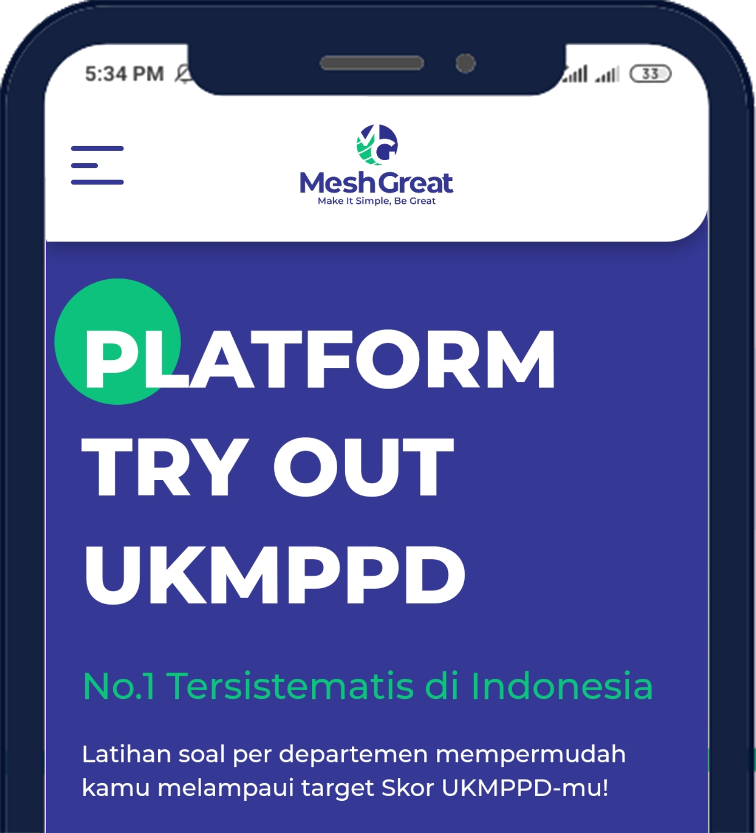 Meshgreat merupakan bimbel kedokteran yang terfokus kepada calon peserta Ujian Kompetensi Mahasiswa Program Profesi Dokter (UKMPPD). Mengapa Meshgreat berdiri? Kami melihat cukup banyak calon peserta UKMPPD yang belum berhasil mendapatkan skor yang cukup saat latihan UKMPPD di Universitasnya masing-masing. Hal ini menandakan bahwa banyak materi yang harus direview kembali untuk memaksimalkan knowledge yang telah dimiliki selama pendidikan S1 dan Koas. Pentingnya belajar secara konseptual akan sangat membantu pemahaman dan ingatan dalam jangka waktu menengah hingga jangka panjang. Disamping itu, kami mempunyai prinsip bahwa kesuksesan terbesar kami adalah mempermudah orang lain meraih kesuksesan juga. Nama Meshgreat didapatkan dari nama Meshwork yang terinspirasi dari salah satu anatomi mata yaitu trabecular meshwork sebagai bagian dari perjalan penting aliran aqueous humour ke canal schleem lalu ke, vena episklera. Penambahan Kata “Great” merupakan harapan kami dan mewakili setiap orang atas kesuksesan yang akan didapatkan kelak. Yang tentu saja atas kerja keras yang telah dilakukan. Oleh sebab itu, Meshgreat ingin menghadirkan program-program berupa Sharing session dengan pengajar (Academic Mentor) terbaik dan platform Try-Out yang memudahkan perjalanan untuk mendapatkan kelulusan UKMPPD. Meshwork yaitu Induk dari Meshgreat mulai berdiri pada 23 September 2018 di Bandung. Meshgreat, bertahan dan berkembang dibawah naungan dr. Mizan Fajri sebagai Founder dan CEO.